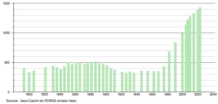 - ↑ Fiches Insee - Populations de référence de la commune pour les années 2006, 2007, 2008, 2009, 2010, 2011, 2012, 2013, 2014, 2015, 2016, 2017, 2018, 2019, 2020, 2021 et 2022.