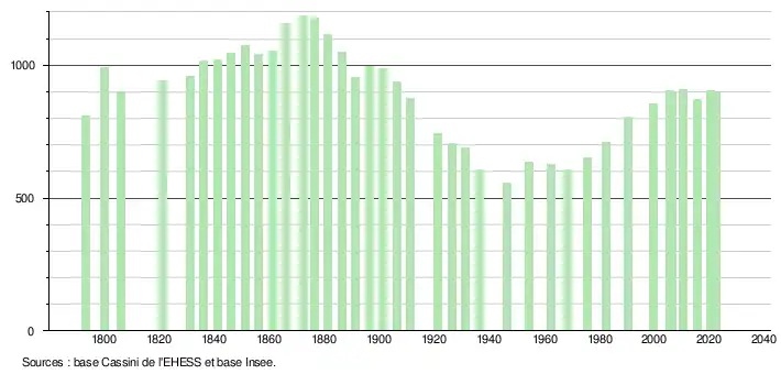 - ↑ Fiches Insee - Populations de référence de la commune pour les années 2006, 2007, 2008, 2009, 2010, 2011, 2012, 2013, 2014, 2015, 2016, 2017, 2018, 2019, 2020, 2021 et 2022.