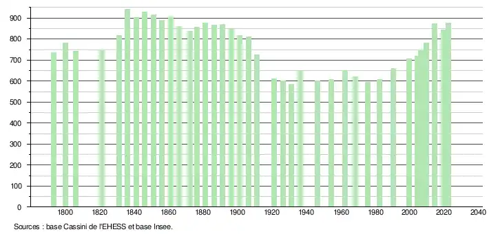 - ↑ Population municipale de référence en vigueur au 1er janvier 2025, millésimée 2022, définie dans les limites territoriales en vigueur au 1er janvier 2024, date de référence statistique : 1er janvier 2022.