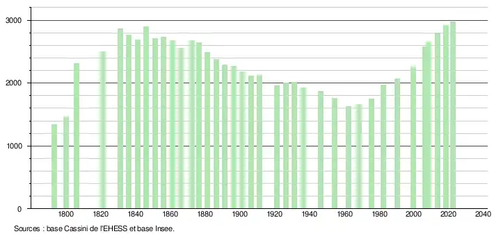 - ↑ Fiches Insee - Populations de référence de la commune pour les années 2006, 2007, 2008, 2009, 2010, 2011, 2012, 2013, 2014, 2015, 2016, 2017, 2018, 2019, 2020, 2021 et 2022.