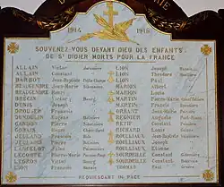 - ↑ Joseph Lion, né le à Saint-Didier, soldat au 130e régiment d'infanterie, tué à l'ennemi le à Virton (Belgique)
