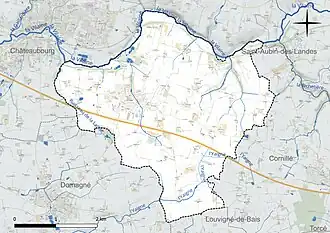 La commune est située dans le bassin Loire-Bretagne. Elle est drainée par la Vilaine, l'Yaigne, le ruisseau de la Lande[9],[10],[Carte 1].