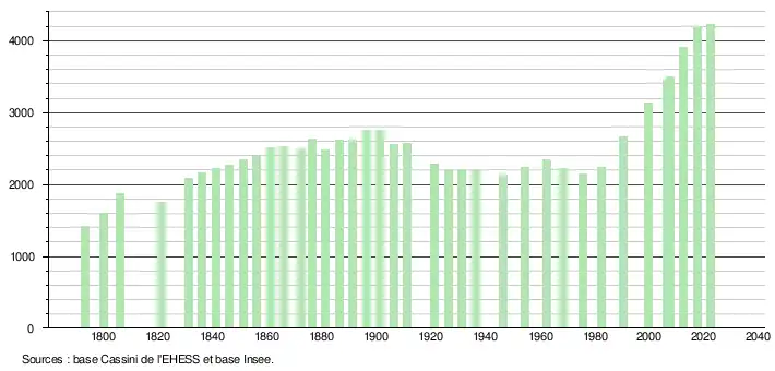 - ↑ Fiches Insee - Populations de référence de la commune pour les années 2006, 2007, 2008, 2009, 2010, 2011, 2012, 2013, 2014, 2015, 2016, 2017, 2018, 2019, 2020, 2021 et 2022.