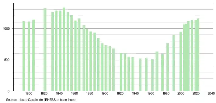 - ↑ Fiches Insee - Populations de référence de la commune pour les années 2006, 2007, 2008, 2009, 2010, 2011, 2012, 2013, 2014, 2015, 2016, 2017, 2018, 2019, 2020, 2021 et 2022.