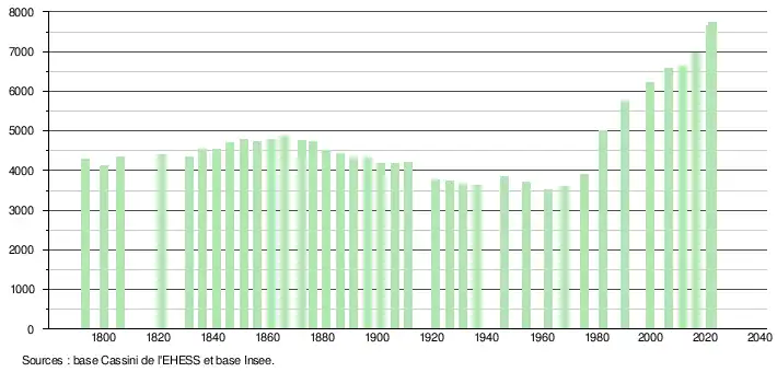 - ↑ Fiches Insee - Populations de référence de la commune pour les années 2006, 2007, 2008, 2009, 2010, 2011, 2012, 2013, 2014, 2015, 2016, 2017, 2018, 2019, 2020, 2021 et 2022.