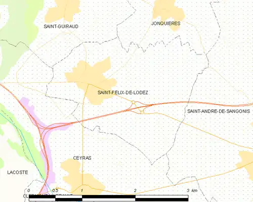 - ↑ « Orthodromie entre Saint-Félix-de-Lodez et Saint-André-de-Sangonis », sur fr.distance.to (consulté le ).