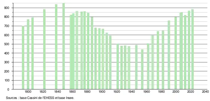 - ↑ Fiches Insee - Populations de référence de la commune pour les années 2006, 2007, 2008, 2009, 2010, 2011, 2012, 2013, 2014, 2015, 2016, 2017, 2018, 2019, 2020, 2021 et 2022.