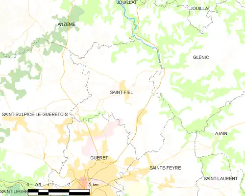- ↑ « Orthodromie entre Saint-Fiel et Guéret », sur fr.distance.to (consulté le ).