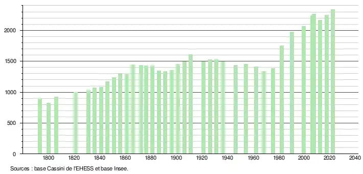 - ↑ Fiches Insee - Populations de référence de la commune pour les années 2006, 2007, 2008, 2009, 2010, 2011, 2012, 2013, 2014, 2015, 2016, 2017, 2018, 2019, 2020, 2021 et 2022.