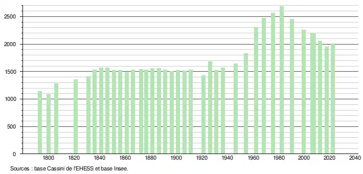 - ↑ Fiches Insee - Populations de référence de la commune pour les années 2006, 2007, 2008, 2009, 2010, 2011, 2012, 2013, 2014, 2015, 2016, 2017, 2018, 2019, 2020, 2021 et 2022.