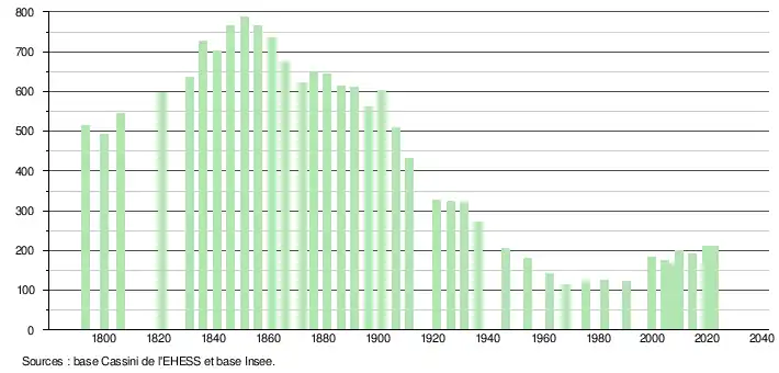 - ↑ Fiches Insee - Populations de référence de la commune pour les années 2006, 2007, 2008, 2009, 2010, 2011, 2012, 2013, 2014, 2015, 2016, 2017, 2018, 2019, 2020, 2021 et 2022.