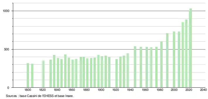 - ↑ Fiches Insee - Populations de référence de la commune pour les années 2006, 2007, 2008, 2009, 2010, 2011, 2012, 2013, 2014, 2015, 2016, 2017, 2018, 2019, 2020, 2021 et 2022.