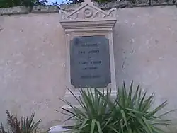 • À l'entrée du cimetière se trouve un pilier quadrangulaire portant des inscriptions latines. Il s'agit d'un cippe funéraire datant du IIe siècle. Plus massif qu'une stèle, il fait office de pierre tombale et d'autel. Des plantes occupent le creux aménagé dans la pierre pour recevoir les offrandes.