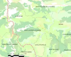 Saint-Laurent-les-Bains est entourée de sept communes, dont cinq sont situées dans le département de l'Ardèche et deux dans le département de la Lozère.