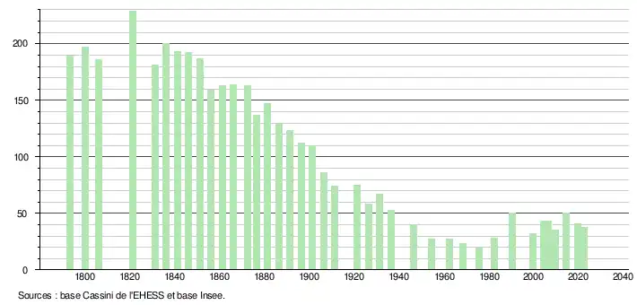 (Sources : Ldh/EHESS/Cassini jusqu'en 1999[36] puis Insee à partir de 2006[37].)