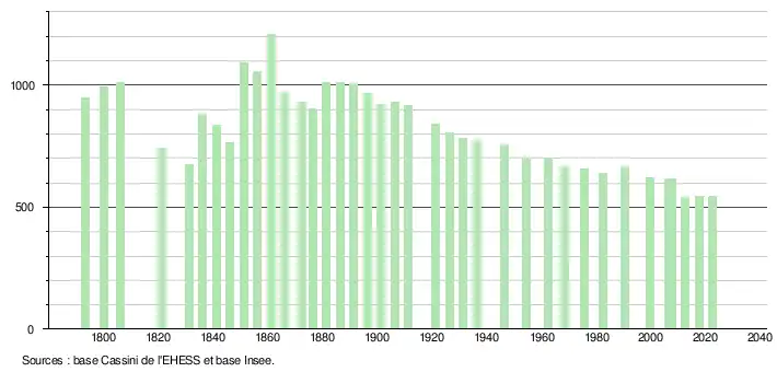 - ↑ Population municipale de référence en vigueur au 1er janvier 2025, millésimée 2022, définie dans les limites territoriales en vigueur au 1er janvier 2024, date de référence statistique : 1er janvier 2022.