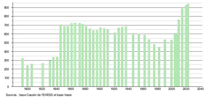- ↑ Fiches Insee - Populations de référence de la commune pour les années 2006, 2007, 2008, 2009, 2010, 2011, 2012, 2013, 2014, 2015, 2016, 2017, 2018, 2019, 2020, 2021 et 2022.