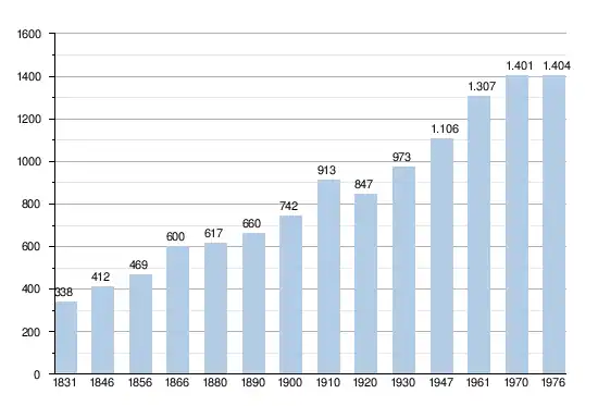 - Sources:INS, Rem:1831 jusqu'en 1970=recensements, 1976= nombre d'habitants au 31 décembre