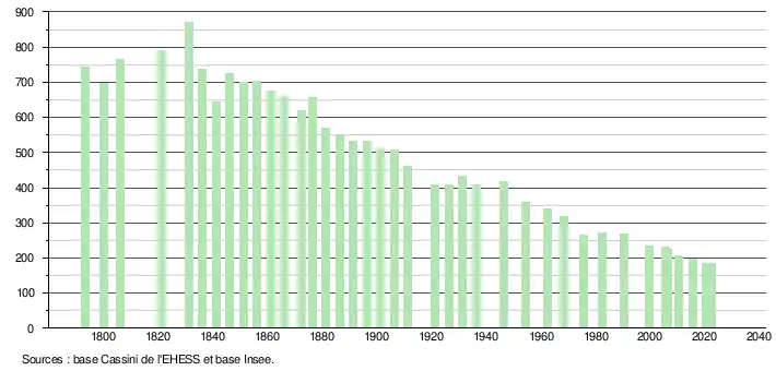 - ↑ Population municipale de référence en vigueur au 1er janvier 2025, millésimée 2022, définie dans les limites territoriales en vigueur au 1er janvier 2024, date de référence statistique : 1er janvier 2022.