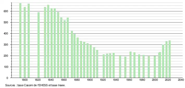 (Sources : Ldh/EHESS/Cassini jusqu'en 1999[28] puis Insee à partir de 2006[29].)