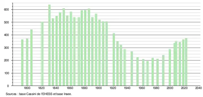 - ↑ Fiches Insee - Populations de référence de la commune pour les années 2006, 2007, 2008, 2009, 2010, 2011, 2012, 2013, 2014, 2015, 2016, 2017, 2018, 2019, 2020, 2021 et 2022.