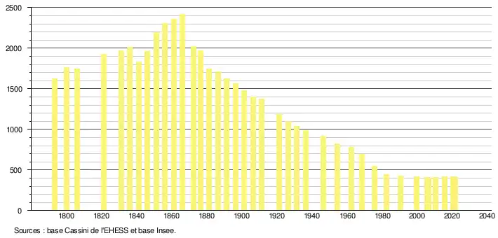 En 2021, la commune comptait 411 habitants[Note 2], en évolution de −0,96 % par rapport à 2015 (Mayenne : −0,73 %, France hors Mayotte : +2,11 %).