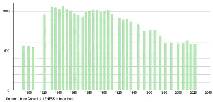 - ↑ Fiches Insee - Populations de référence de la commune pour les années 2006, 2007, 2008, 2009, 2010, 2011, 2012, 2013, 2014, 2015, 2016, 2017, 2018, 2019, 2020, 2021 et 2022.