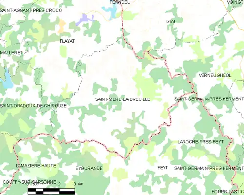 - ↑ « Orthodromie entre Saint-Merd-la-Breuille et La Courtine », sur fr.distance.to (consulté le ).