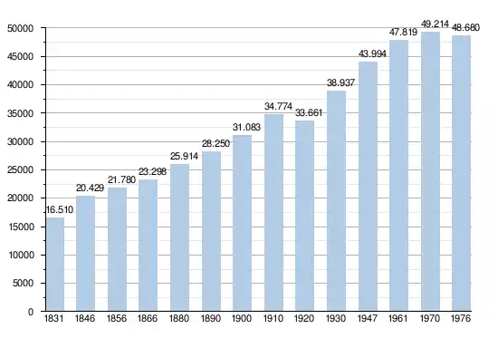 • Source : DGS - Remarque: 1831 jusqu'à 1981=recensement; depuis 1990=nombre d'habitants chaque 1er janvier[5]