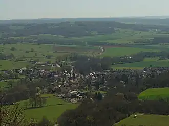 L'occupation des sols de la commune, telle qu'elle ressort de la base de données européenne d’occupation biophysique des sols Corine Land Cover (CLC), est marquée par l'importance des territoires agricoles (77,4 % en 2018), une proportion identique à celle de 1990 (77,4 %). La répartition détaillée en 2018 est la suivante : prairies (44 %), terres arables (23,9 %), forêts (15,9 %), zones agricoles hétérogènes (6,8 %), milieux à végétation arbustive et/ou herbacée (4,7 %), cultures permanentes (2,7 %), zones urbanisées (2 %)[12]. L'évolution de l’occupation des sols de la commune et de ses infrastructures peut être observée sur les différentes représentations cartographiques du territoire : la carte de Cassini (XVIIIe siècle), la carte d'état-major (1820-1866) et les cartes ou photos aériennes de l'IGN pour la période actuelle (1950 à aujourd'hui)[Carte 1].