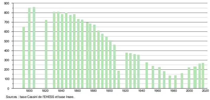 (Sources : Ldh/EHESS/Cassini jusqu'en 1999[8] puis Insee à partir de 2006[9].)