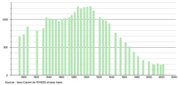 - ↑ Fiches Insee - Populations de référence de la commune pour les années 2006, 2007, 2008, 2009, 2010, 2011, 2012, 2013, 2014, 2015, 2016, 2017, 2018, 2019, 2020, 2021 et 2022.