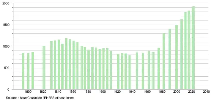 - ↑ Fiches Insee - Populations de référence de la commune pour les années 2006, 2007, 2008, 2009, 2010, 2011, 2012, 2013, 2014, 2015, 2016, 2017, 2018, 2019, 2020, 2021 et 2022.