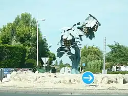 Rond-point à Saint-Pierre D734 sculpture La vigne et les poissons.