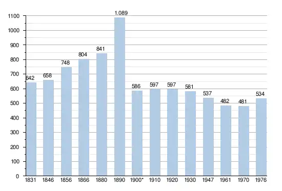 - Source: DGS, 1831 à 1970=recensements population, 1976= habitants au 31 décembre
