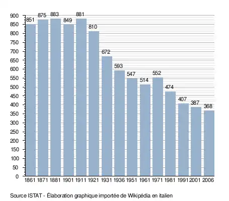 - ↑ (it) Popolazione residente e bilancio demografico sur le site de l'ISTAT.