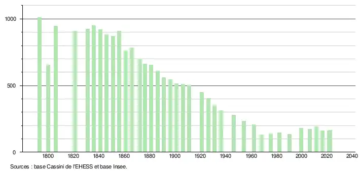 ↑ Population municipale de référence en vigueur au 1erjanvier2025, millésimée 2022, définie dans les limites territoriales en vigueur au 1erjanvier2024, date de référence statistique: 1erjanvier2022.