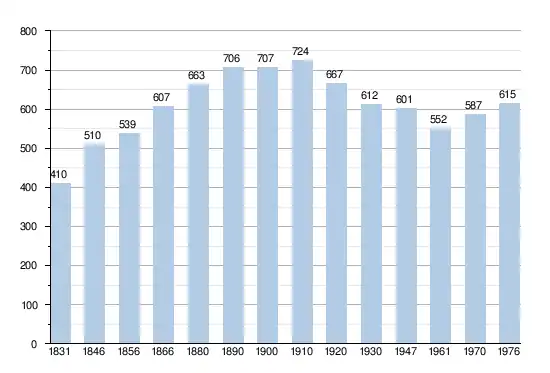 - Sources:INS, Rem:1831 jusqu'en 1970=recensements, 1976= nombre d'habitants au 31 décembre