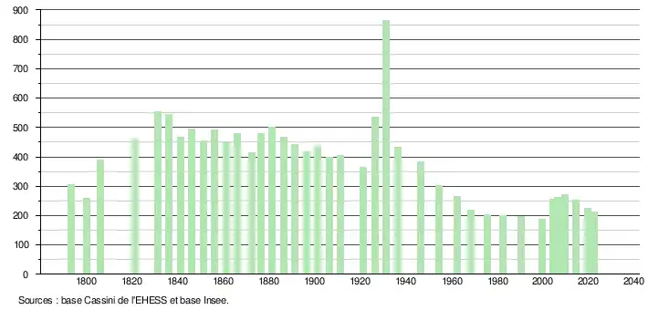 - ↑ Fiches Insee - Populations de référence de la commune pour les années 2006, 2007, 2008, 2009, 2010, 2011, 2012, 2013, 2014, 2015, 2016, 2017, 2018, 2019, 2020, 2021 et 2022.