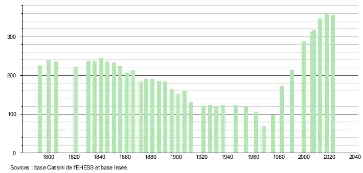 - ↑ Fiches Insee - Populations de référence de la commune pour les années 2006, 2007, 2008, 2009, 2010, 2011, 2012, 2013, 2014, 2015, 2016, 2017, 2018, 2019, 2020, 2021 et 2022.