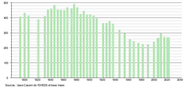 - ↑ Fiches Insee - Populations de référence de la commune pour les années 2006, 2007, 2008, 2009, 2010, 2011, 2012, 2013, 2014, 2015, 2016, 2017, 2018, 2019, 2020, 2021 et 2022.