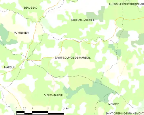 - ↑ Fiche commune Saint-Sulpice-de-Mareuil, Union des maires de la Dordogne, consultée le 22 novembre 2016.