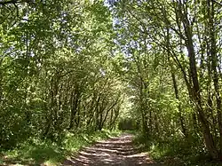 Plus à l’ouest, le territoire présente un visage différent, nettement plus boisé. Les principaux massifs sont constitués presque exclusivement de feuillus (essentiellement chênes et chênes verts ou « yeuses ») comme à Breuillet. Ces forêts sont le bois de Leuse (c’est-à-dire de « l’yeuse »), de la Lande, de la Parée, des Groies, de Maine-Auger et de la Courant. Le plateau y est ponctué de quelques collines peu accentuées : colline de Leuse (38 mètres), point culminant de la commune, de Jaffe (35 mètres), de Maubeuge, près du stade (33 mètres), de Point du Mil (29 mètres) ou encore de Brie (28 mètres) et est entaillé de plusieurs petites dépressions ou « combes », où coulent de modestes ruisseaux.