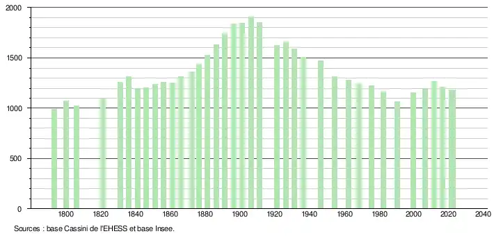- ↑ Fiches Insee - Populations de référence de la commune pour les années 2006, 2007, 2008, 2009, 2010, 2011, 2012, 2013, 2014, 2015, 2016, 2017, 2018, 2019, 2020, 2021 et 2022.