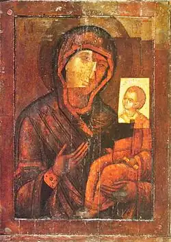 Au dos de l'icône, sous des anciennes inscriptions, une figure de Notre-Dame Odigitria est représentée. Elle est due à des maîtres grecs qui ont travaillé à Moscou et est datée du milieu du XIVe siècle[6]. Sous cette icône, se trouve encore une peinture antérieure dont le degré de conservation est inconnu[5] et dont il ne reste que la figure de l'Enfant-Jésus[7].