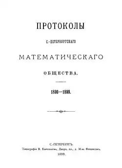 - ↑ (ru) Протоколы С.-Петербургского математического общества, Saint-Pétersbourg,