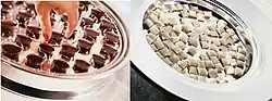 Jus de raisin et morceaux de pain préparés pour la communion dans une église baptiste.