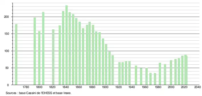 - ↑ Fiches Insee - Populations de référence de la commune pour les années 2006, 2007, 2008, 2009, 2010, 2011, 2012, 2013, 2014, 2015, 2016, 2017, 2018, 2019, 2020, 2021 et 2022.