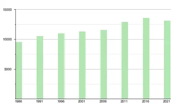 Le recensement de 2016 y dénombre 13 565 habitants, soit 17,1 % de plus qu'en 2006[2].
