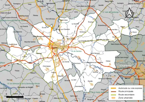 Carte de la communauté d'agglomération de Saintes au .